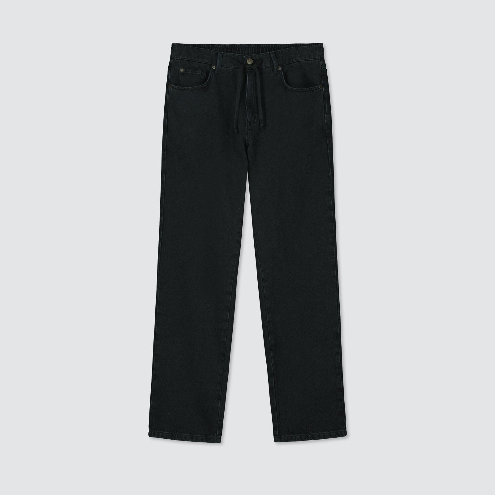 Loose fit Billebeino jeans with drawcords at waist for fit adjustment. Brick embroidery on the side seam and a flat Billebeino embroidery on the back pocket.